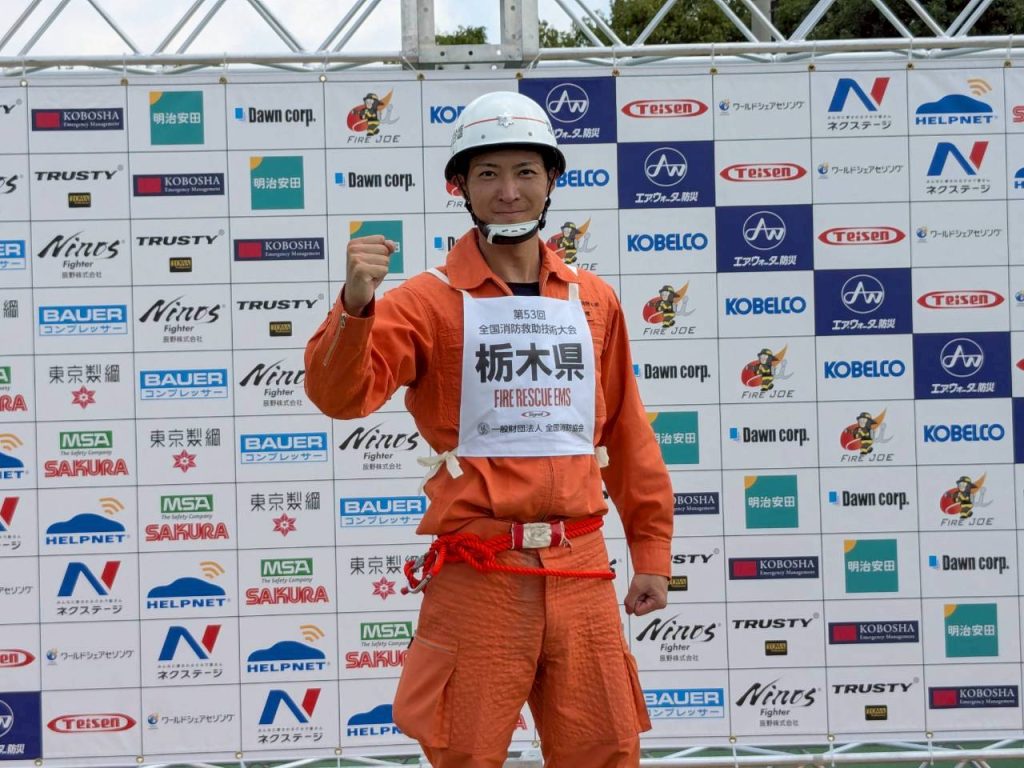 令和7年8月30日(土)に兵庫県立広域防災センターで開催されました「第53回全国消防救助技術大会」にロープブリッジ渡過の栃木県代表として、手塚聡史隊員が出場し、見事入賞を果たすことができました。