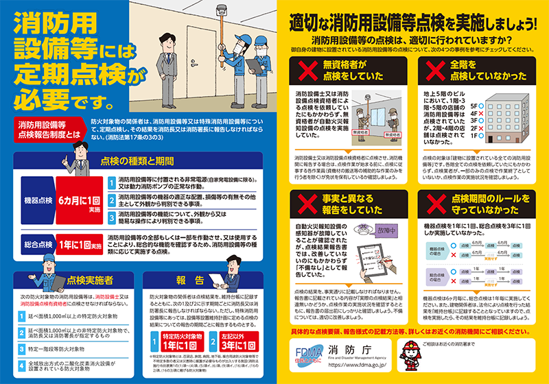 消防用設備等は、いつ火災が発生しても確実に作動するよう、日頃の維持管理が十分に行われていなくてはなりません。